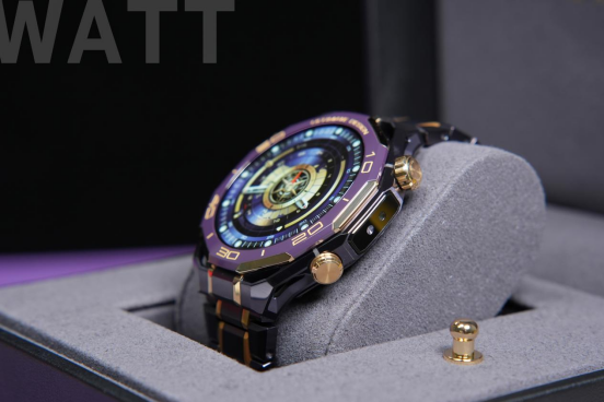 首先,让叔叔带大家品味其设计哲学。紫金配色,在华夏文明中历来是祥瑞与尊贵的至高象征。华为此次将这一文化精髓注入产品灵魂,以业界首创复合稀土紫色陶瓷表圈结合缀以大师纯手工镶嵌的六段18K黄金金条,在方寸腕间完美演绎了“紫气东来,金玉满堂”的美好寓意。