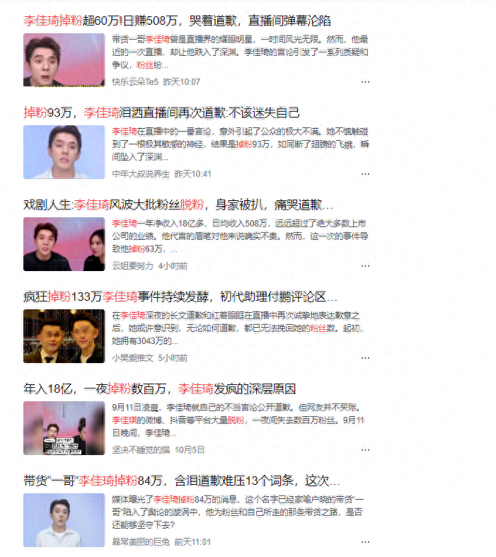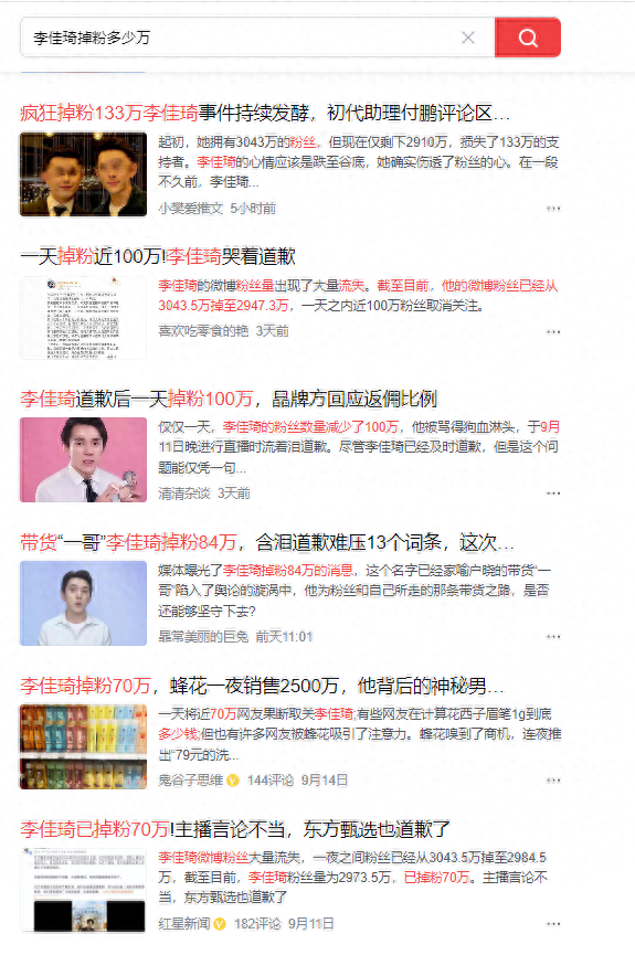 但是,当自己犯下如此“不可饶恕”的过错时候,除了反省,面对一夜之间掉粉的“疯狂性”(有说掉粉过“60万”,有说“70万”,还有“84万”、“93万”等等,至于数百万之说,不知真假,是否算上了全平台的数据?包括微博、抖音平台等等……但有一点可以肯定,的确“掉粉”了。),李佳琦确实能够感受到那种心痛!