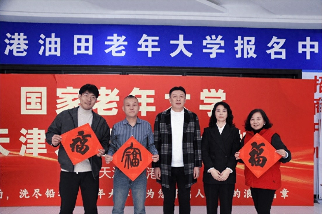 2026年2月12日,由国家老年大学(天津分部)油田分校主办,天津市普丰物业管理有限公司承办,滨海新区海滨街道、中国起鑫教育集团等单位协办的“金马送福”进万家活动,本次活动由国家老年大学(天津分部)油田分校理事长、中国起鑫教育集团董事长王鑫、 国家老年大学天津分部大港油田分校名誉校长张向新、常务校长王利红、执行校长杨敏、后勤主管曹明、教务部主任马林华,联合特邀多位政界领导、书法名家及企业代表共襄盛举,以“墨韵传情、福暖万家”为核心,汇聚政产学研各界力量,打造一场兼具文化厚度与民生温度的年度盛事,为马年新春注入独特的文化活力。
