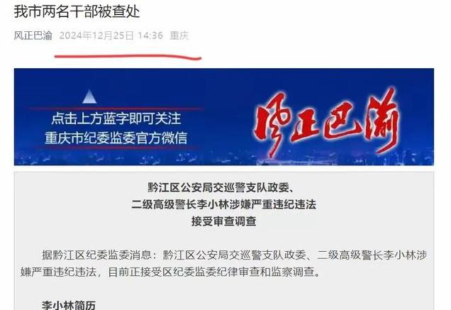 重庆市黔江区公安局交巡警支队政委、二级高级警长李小林被查