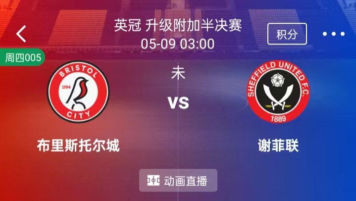 周四 005 英冠:布里斯托城VS谢菲尔德联
