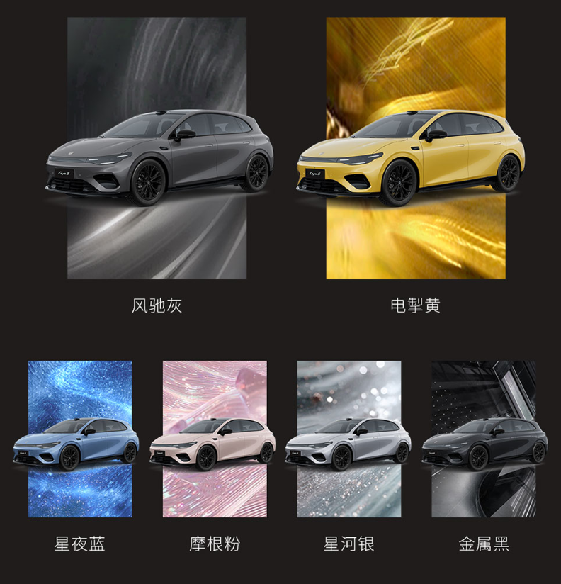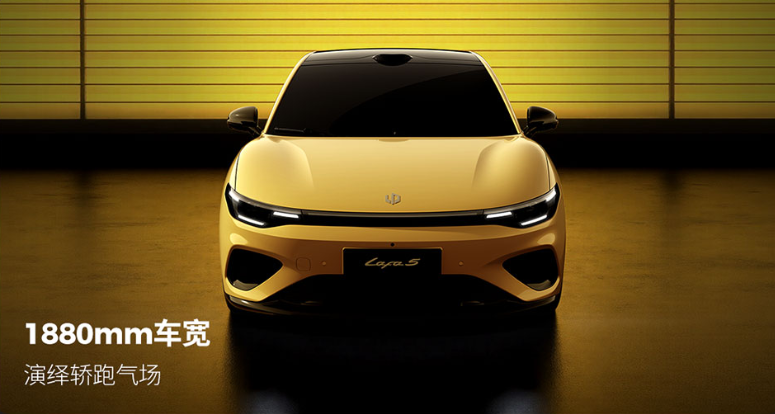 Lafa 5长宽高分别为4430/1880/1520mm,轴距2735mm,配备无边框车门、19英寸轮毂和贯穿式尾灯。新车提供6款车漆和3款内饰配色,搭载高通骁龙8295P车机芯片,配备14.6英寸中控屏和12扬声器音响系统。还有无框车门、nappa全粒面真皮等越级配置。