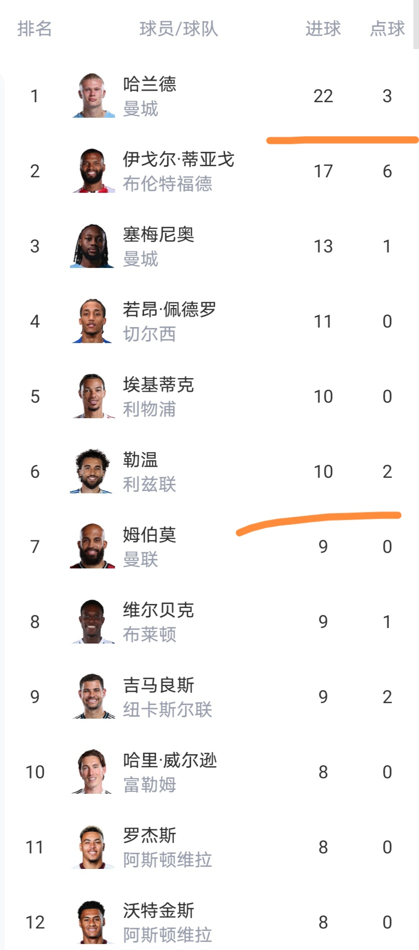 射手榜哈兰德领先优势缩小到5球了,英超金靴悬念起来了。