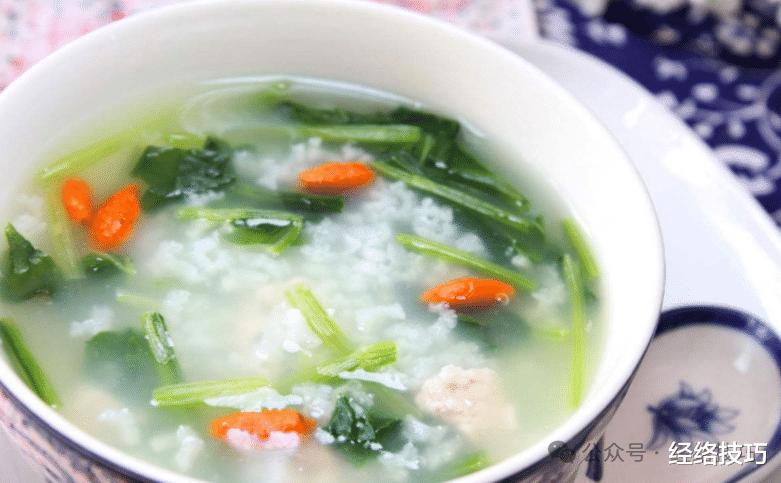 把大米洗干净,提前泡10分钟,煮到软烂。把菠菜焯30秒钟水,切成小段,枸杞洗干净。把菠菜和枸杞放到粥里,再煮3分钟后,加一点点盐调味即可,也可加点瘦肉同煮。早上喝一碗,有助于顺肝气、养脾胃,气血调好后,脸色也可能变得更好。