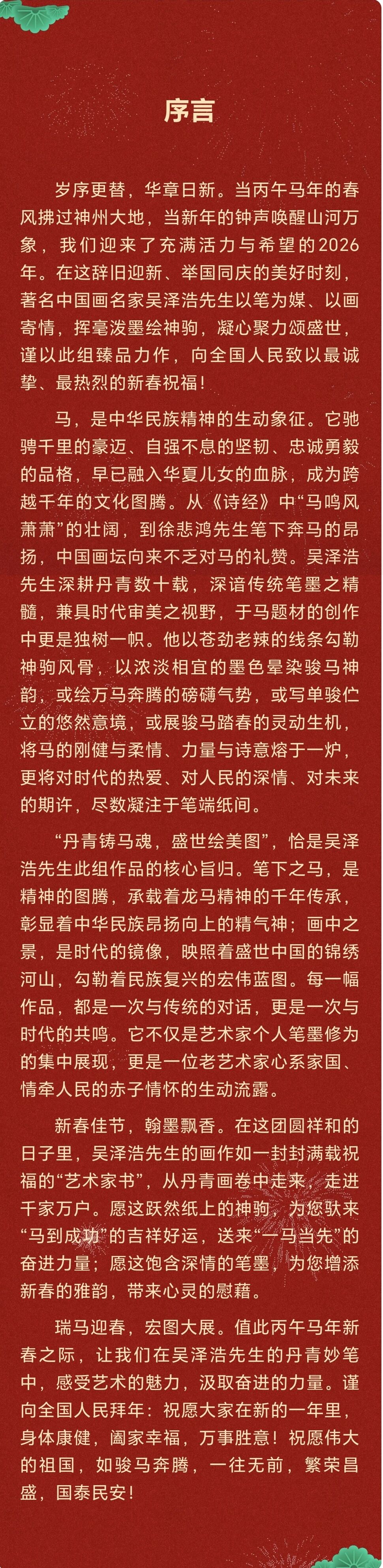 丹青铸马魂,盛世绘美图|2026年中国画名家吴泽浩先生向全国人民拜年