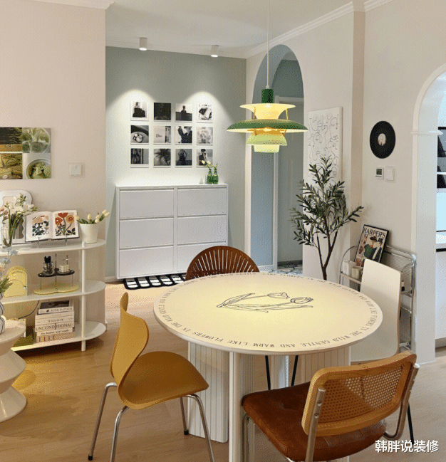 如果家里的装修,走的是中式、复古、温馨路线,圆桌往往更能营造出氛围。