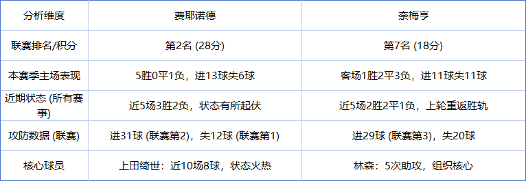 这场荷甲联赛是典型的强弱对话,但从历史交锋看,并不缺少意外。费耶诺德坐拥主场之利且实力占优,但奈梅亨的攻击力也足以制造麻烦。