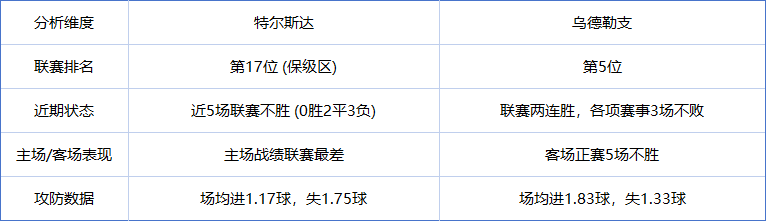 特尔斯达vs乌德勒支这场荷甲比赛是联赛下游保级球队与上游欧战资格竞争者之间的直接对话,两队在整体实力和近期状态上有着比较明显的差距。