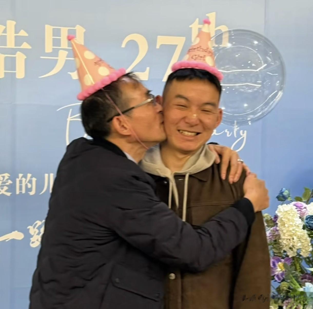 就在最后一张照片上,老谢在谢浩男的脸上狠狠的亲了下那一口,这是他的老作风了,每次见儿子都恨不得多亲几口。