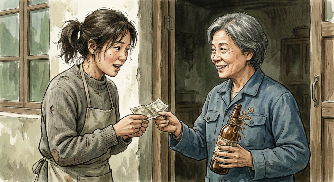 那天,隔壁张婶来借东西,盯着那个装洗洁精的威士忌瓶子看了半天:“晓芳,你这手真巧,这瓶子哪买的?”