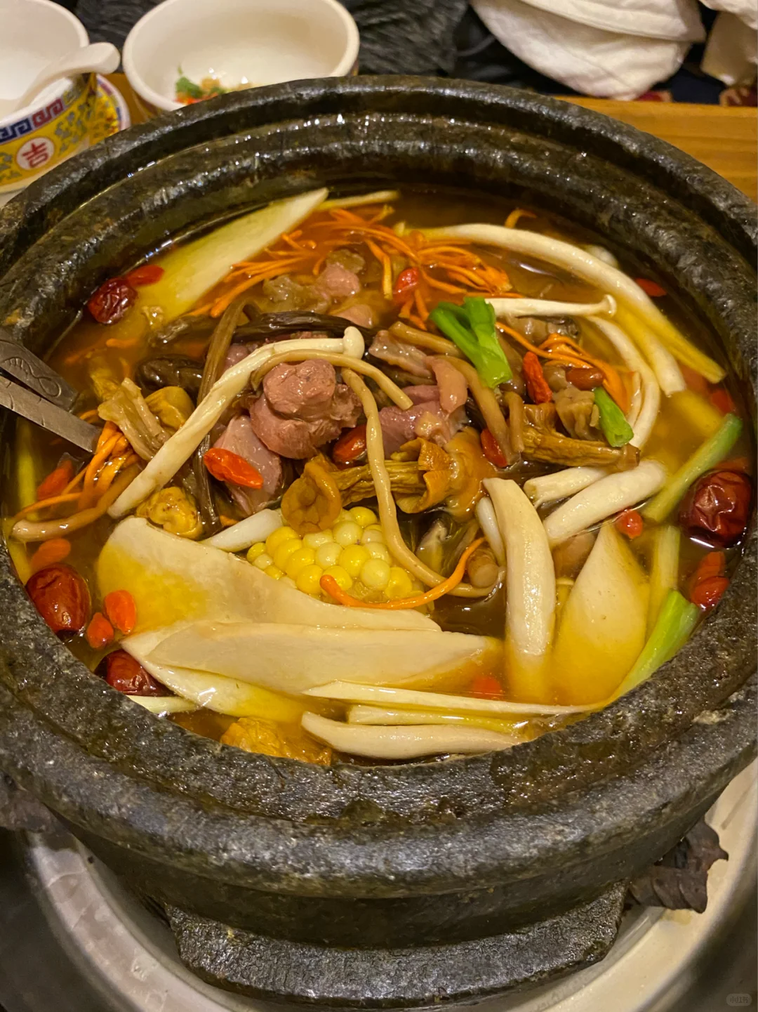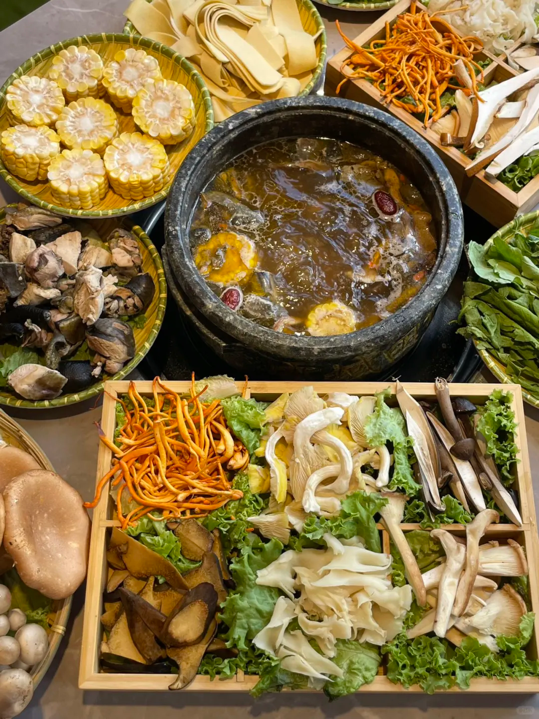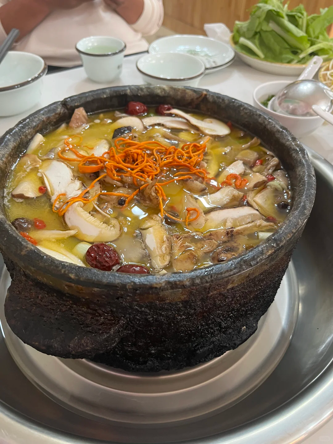 2. 菌菇:鲜味的升华搭配多种高原菌菇,如松茸、羊肚菌、牛肝菌等,这些菌菇富含氨基酸和鲜味物质,能极大地提升石锅鸡的鲜味。每锅鸡搭配约 200g 菌菇,与鸡肉相互映衬,使味道更加醇厚。