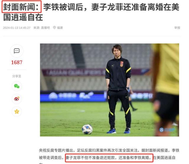 《起底李铁背后的商业版图:坐拥6家公司,均与足球相关》封面新闻2024-1-11发布