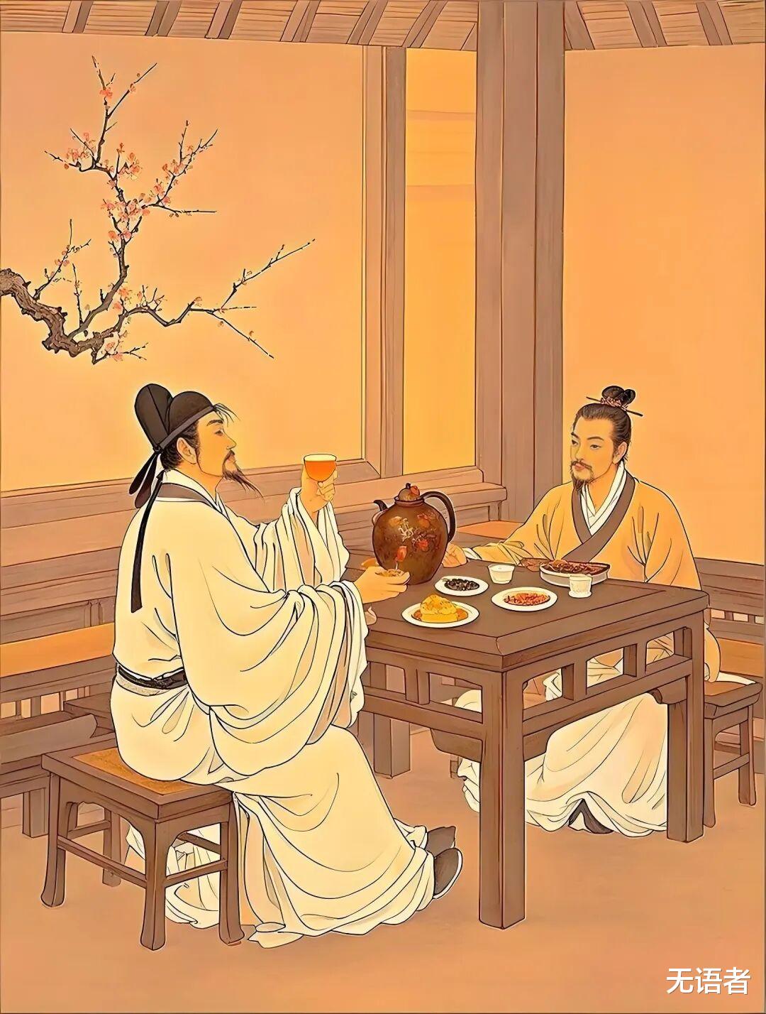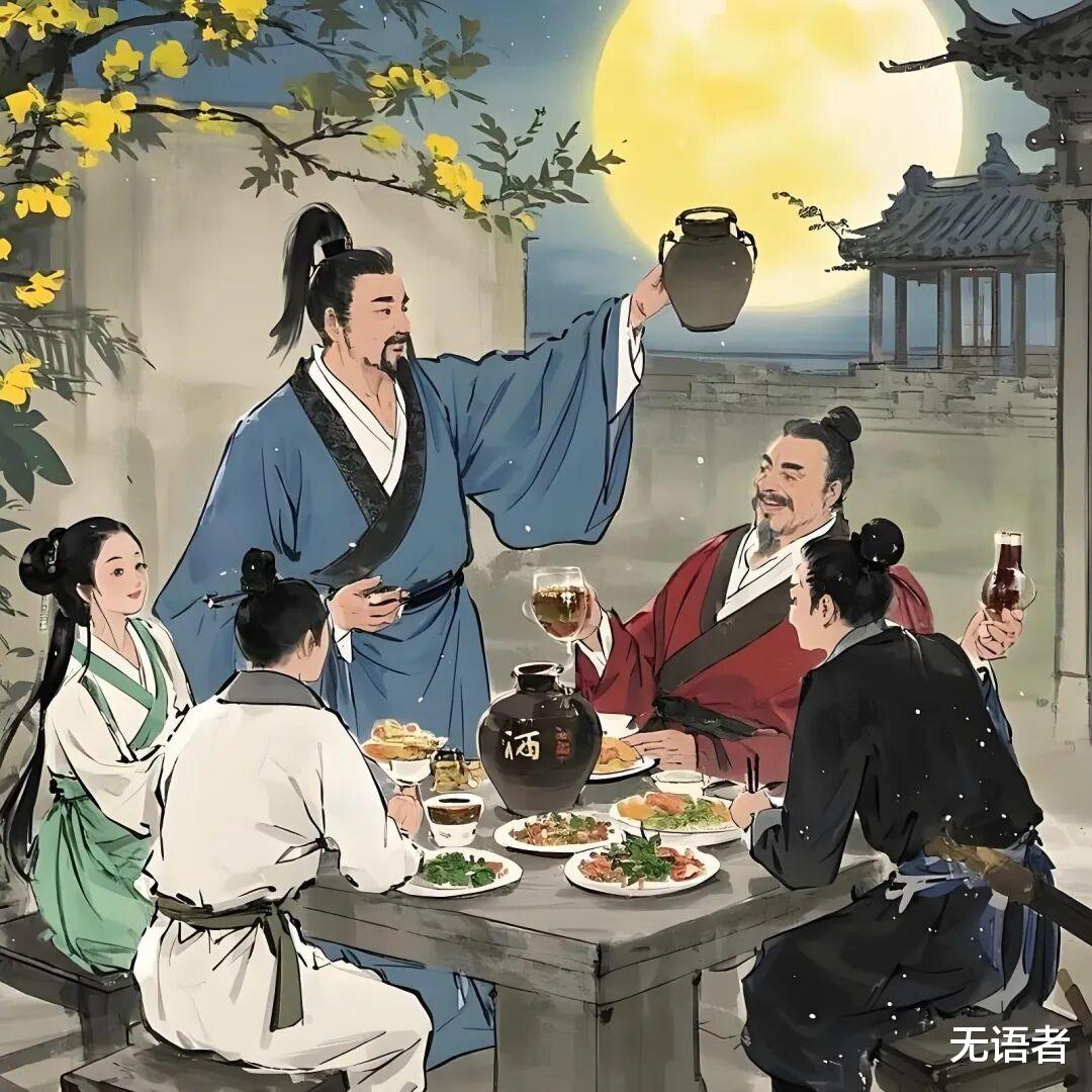 “酒盏忘形同醉少”描绘出大家举杯畅饮,在酒的作用下忘却了平日的拘谨和束缚,尽情沉醉其中。
