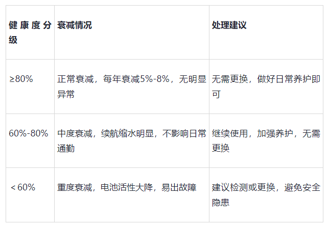 3. 健康度≠必须更换不是健康度<80%就需要更换,重点看是否影响使用:日常通勤仅几十公里,60%-80%健康度可继续用;经常跑长途、续航不够,再考虑检测更换。