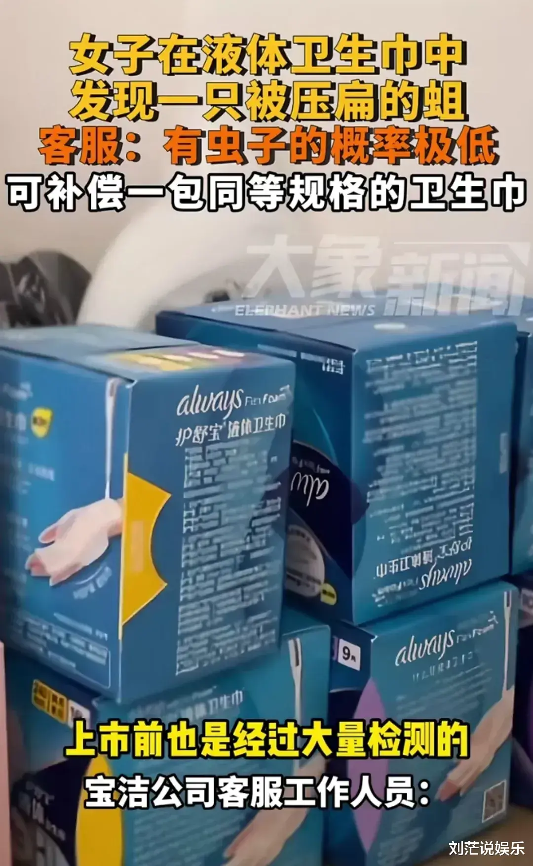 品牌方那边呢,有他们的说法。他们表示产品在上市之前是经过了质量检测的,而且生产过程中有高温处理这道程序,一切都是合法合规的。他们觉得出现这种问题的概率是极低的。所以,他们给这个消费者提出的补偿方案是给一包同等价位的卫生巾。