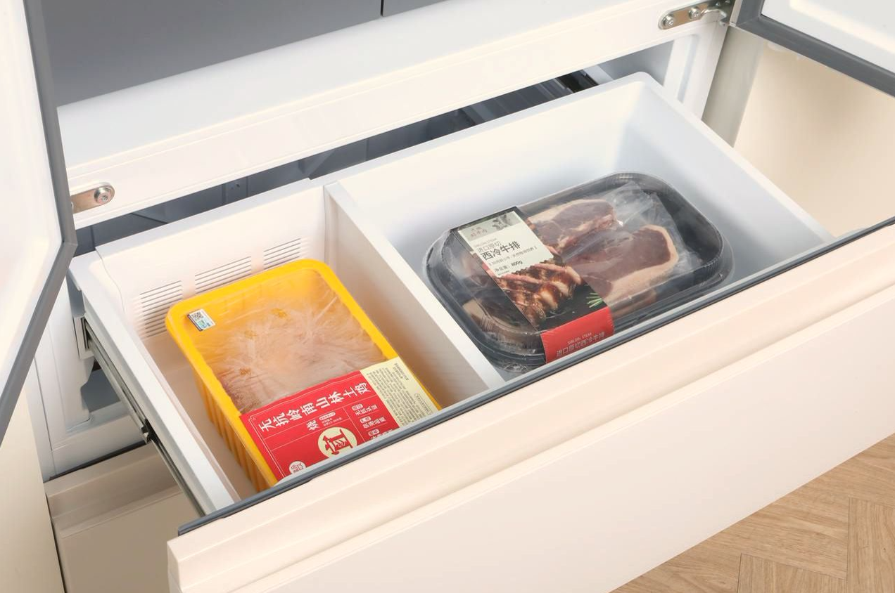 TCL 515双磁鲜冰箱冷藏、冷冻各搭载了一套独立的制冷系统,相当于是两套互相隔离的保鲜舱,彻底断绝了彼此的干扰:冷藏室里卤味、榴莲的香气不会飘到冷冻室,冷冻室鱼虾的鲜味也不会对冷藏室有任何影响。