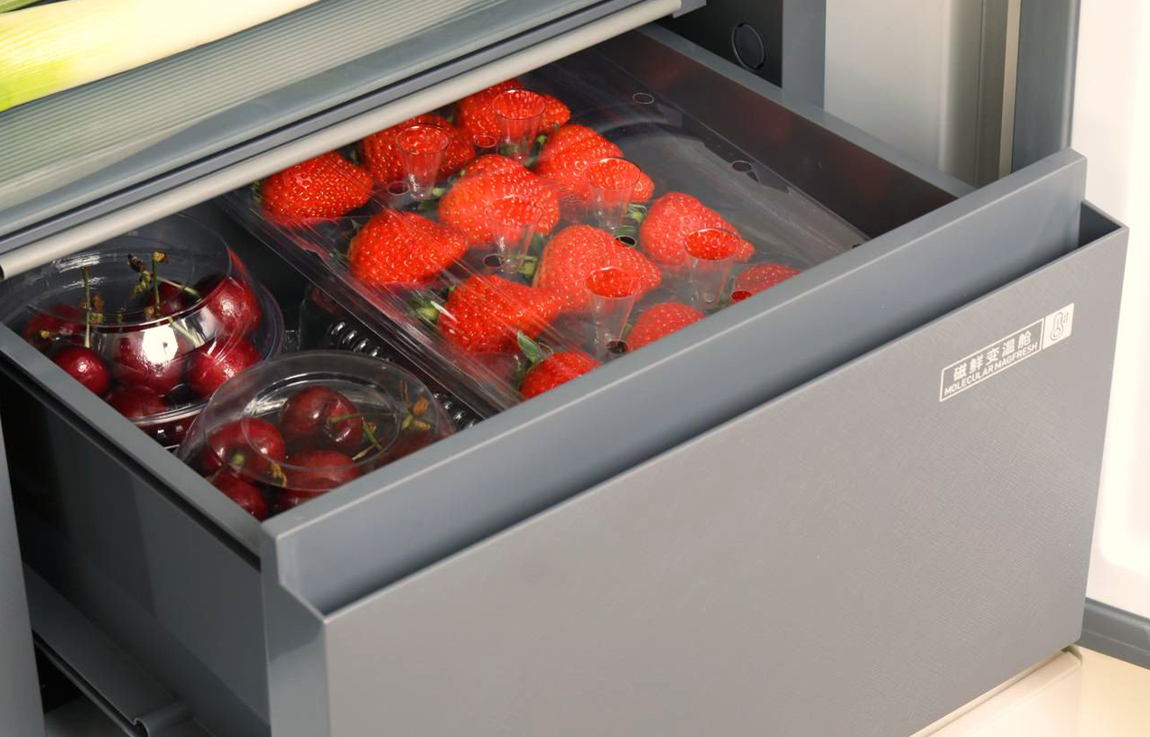 果蔬的保鲜则是另一个难题。虽然不用储存那么久,但却格外“脆弱”,稍有失水就会软塌、发蔫,口感也大打折扣。TCL 515双磁鲜冰箱搭载了原创*分子磁鲜技术,磁场能量能够深入食材内部,减少细胞代谢损耗,果蔬水润状态可以保持15天。更重要的是,连包装也不需要拆,即买即放,格外省心。
