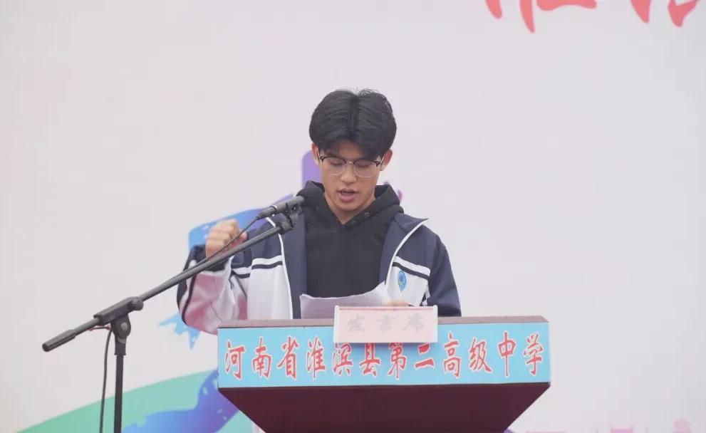 淮滨二高校长李起致开幕辞,李校长围绕学校“立德树人,健康第一,美育润心”的教育理念,从三方面展开阐述:他指出,体育艺术节是体育精神与艺术初心的鲜活诠释——跑道上的拼搏、舞台上的绽放,既是竞技与才艺的展示,更是青春活力与精神风貌的释放;是责任担当的生动书写,师生筹备、参与的每一份付出,都在践行责任;更是点亮成长之路的一盏温暖明灯,见证着大家在挑战中蜕变、在协作中成长。