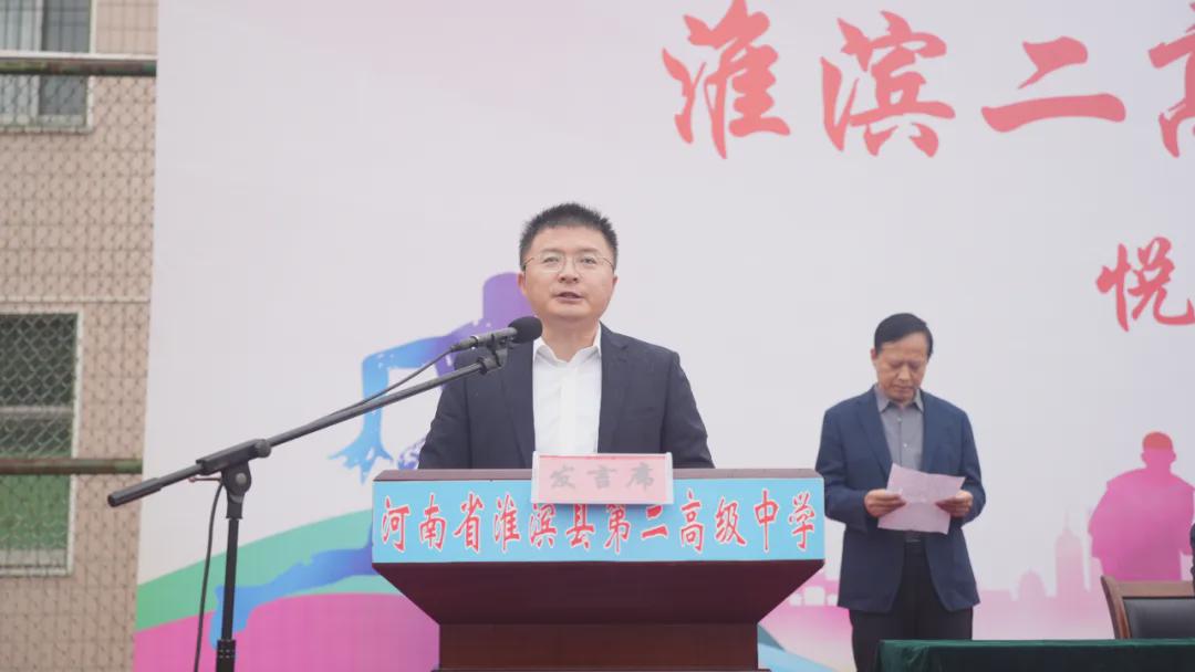 淮滨二高党总支书记臧彬郑重宣布:“淮滨二高首届体育艺术节开幕!”