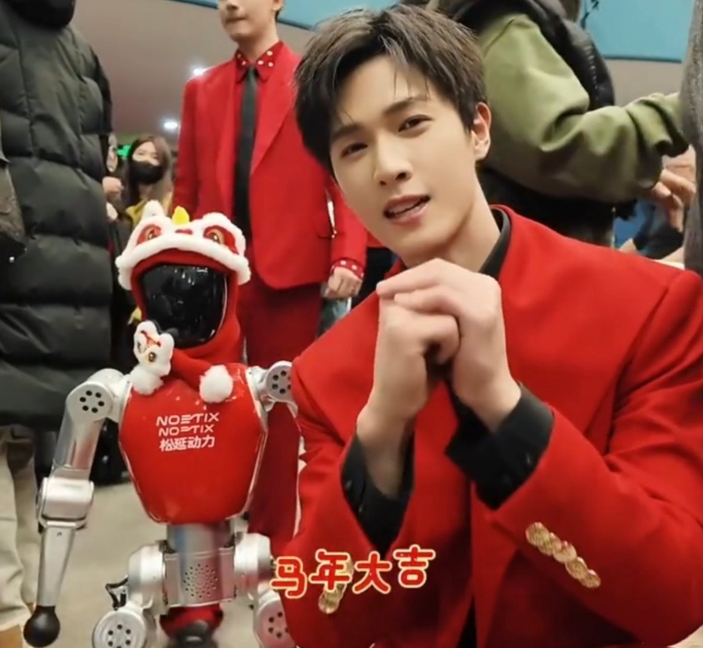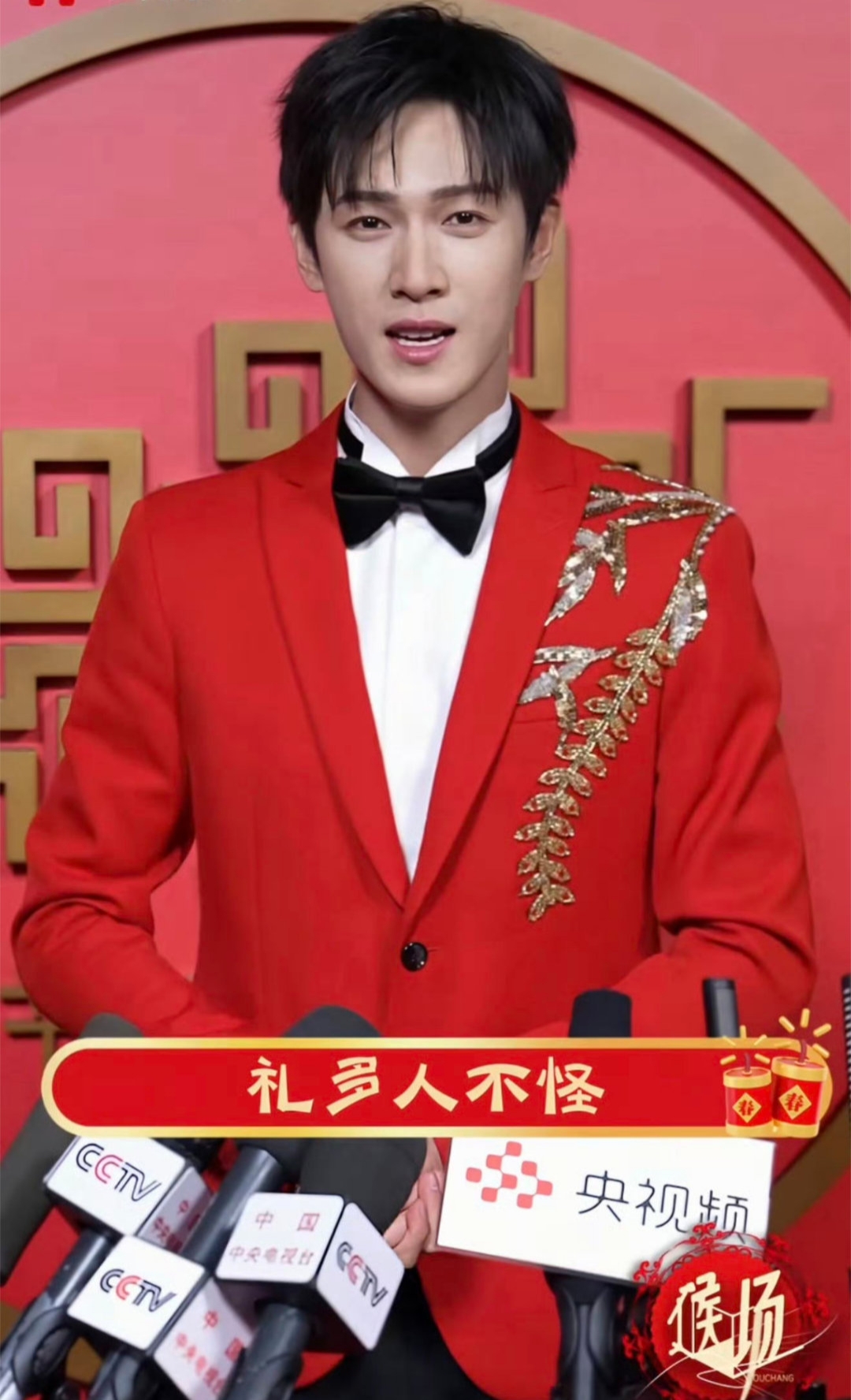与李昀锐的同框则让这份年味有了更丰富的层次。两人均以红色为主色调,却在风格上各有侧重,形成了和谐的视觉呼应。李昀锐的红装造型同样可圈可点,他以其标志性的清爽气质驾驭这一热烈色彩,展现出不同于荧幕形象的另一面。当两位演员并肩而立,画面中的红色不再是单调的重复,而是通过不同的材质、版型与搭配方式,呈现出多样的可能性。这种同框的化学反应,不仅满足了观众对明星互动的期待,更在视觉上构成了一幅极具节日氛围的图景,让人感受到春节特有的热闹与温馨。