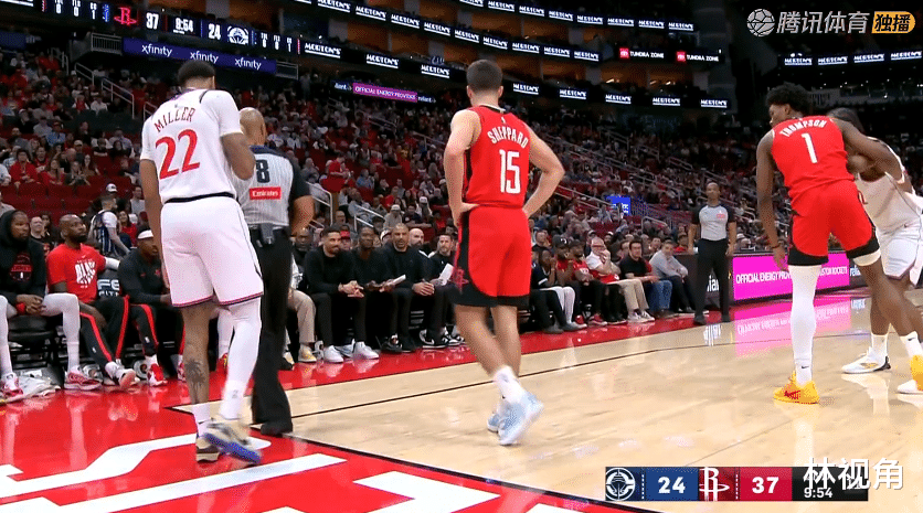 第二节开始,小谢三分命中,申京篮下得手,火箭打出一波8-2的小高潮,一举将分差扩大到十分以上。