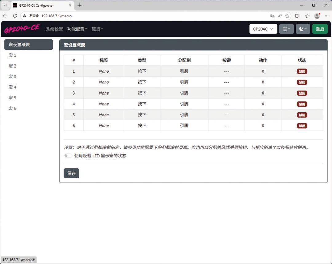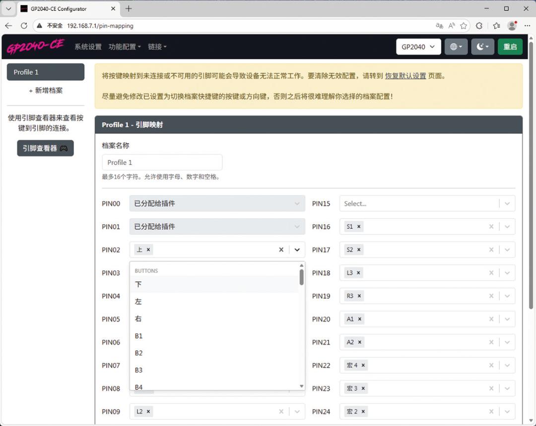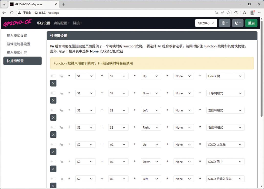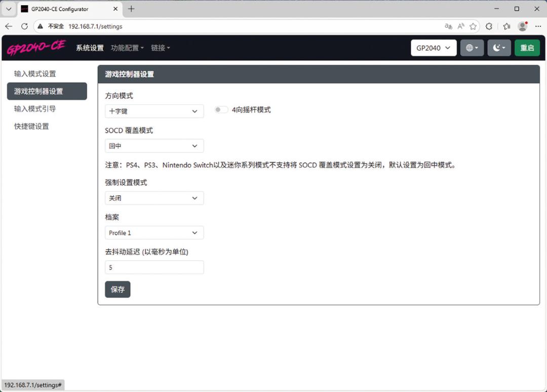 ▲网页配置支持部分参数调整,包括方向模式、SOCD覆盖模式。