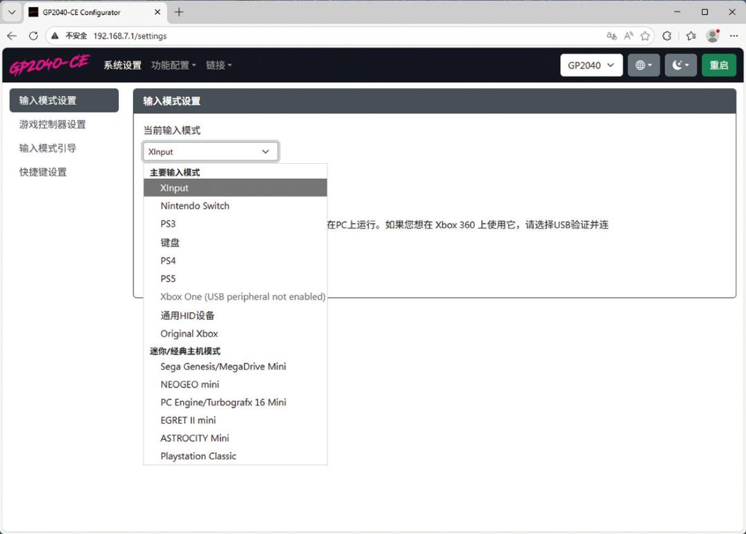 ▲网页配置可以对Filco极峰游戏控制器的输入模式进行调整