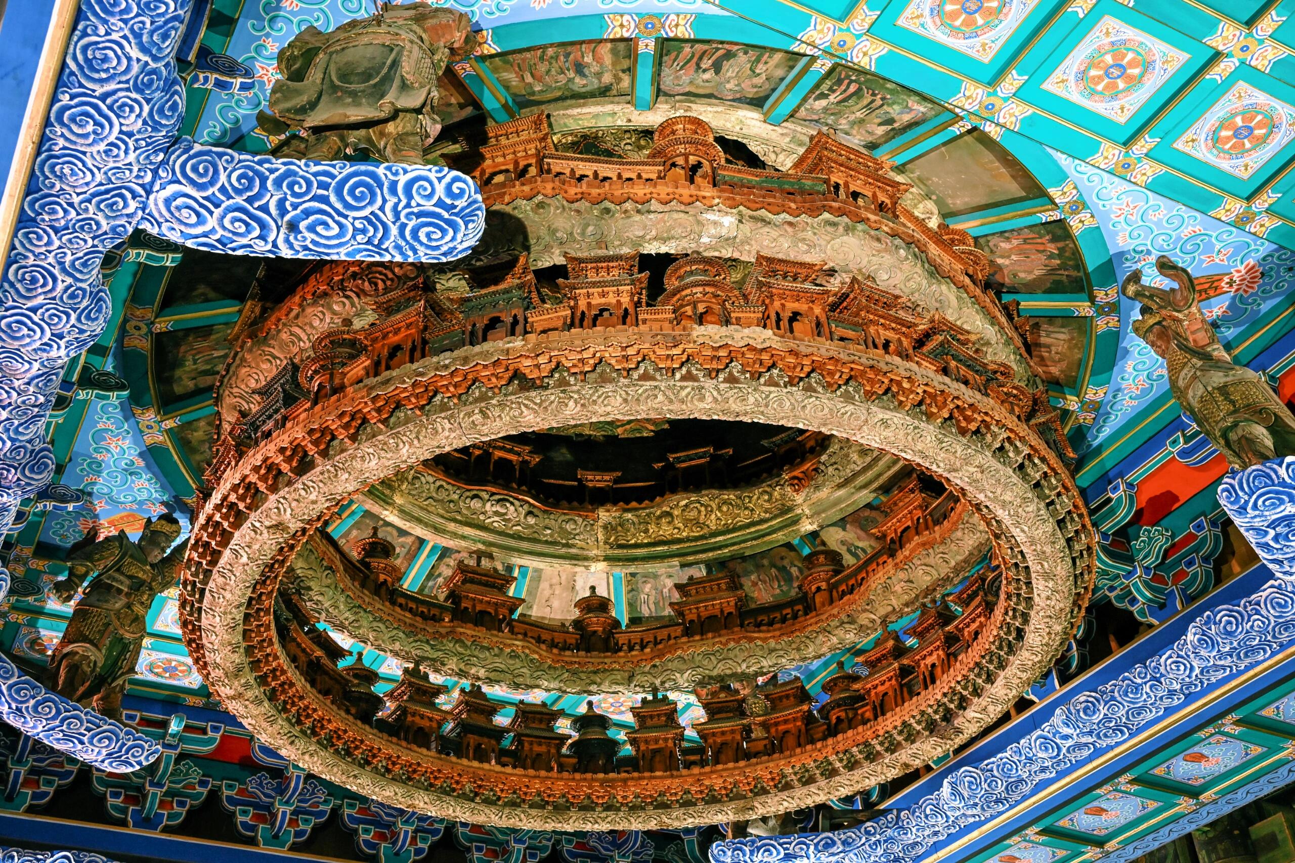 推开北京古代建筑博物馆太岁殿厚重的木门,光线骤然变得柔和,空气中漂浮着细微的尘埃,在透过窗棂的光束里缓缓游动。殿内穹顶之下,一件庞大的木构艺术品静静悬浮,斗拱层叠如莲花绽放,彩绘在岁月里晕出温润的光泽——这便是隆福寺天宫藻井,被古建匠人称作“天花板的天花板”的国之瑰宝。