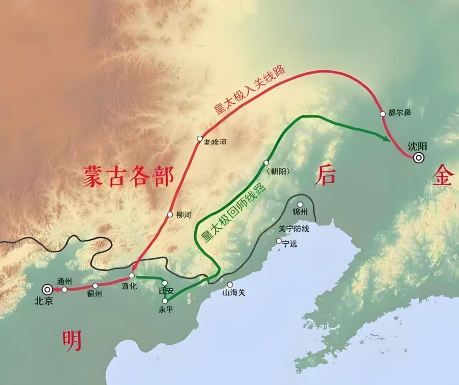 皇太极绕道蒙古从蓟镇入关的目的是掠夺物资人口、消灭明军有生力量、削弱明朝国力,他根本就没打算长住。