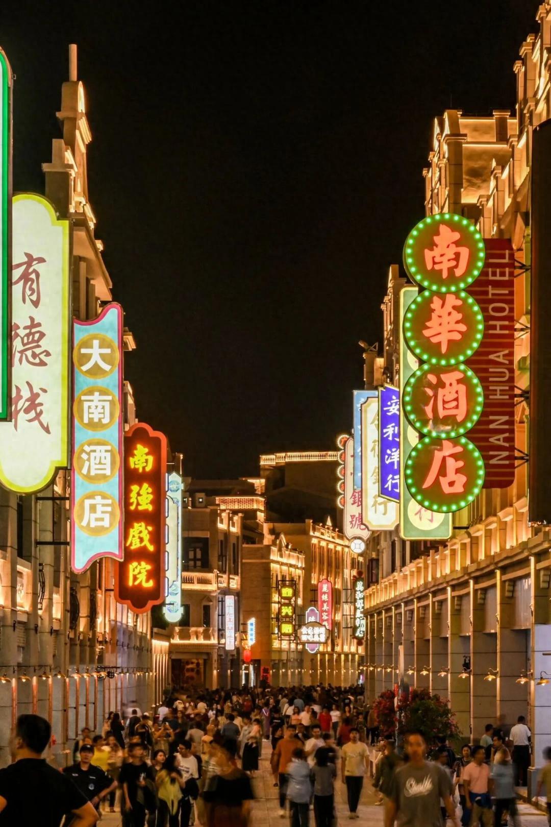 华灯初上时,骑楼城化作流光溢彩的岭南长卷。暖黄灯火勾勒出中西合璧的骑楼轮廓,光影里的百年商埠风华与鲜活市井气息交融。街头艺人弹唱着岭南民谣,游客们边逛边吃,感受着百年商埠的烟火气息。