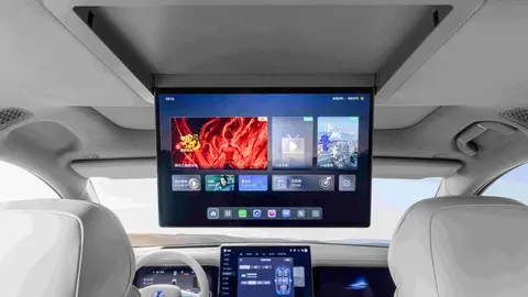 进入车内,腾势N8L的中控屏比较大,为17.3英寸,2.5K分辨率,内置了车辆控制和各种应用;副驾驶屏和液晶仪表均为13.2英寸。此外,顶配车型还搭载了17.3英寸吸顶屏,位于第一排和第二排中间上部车顶上,可以播放视频、控制车内空调等。