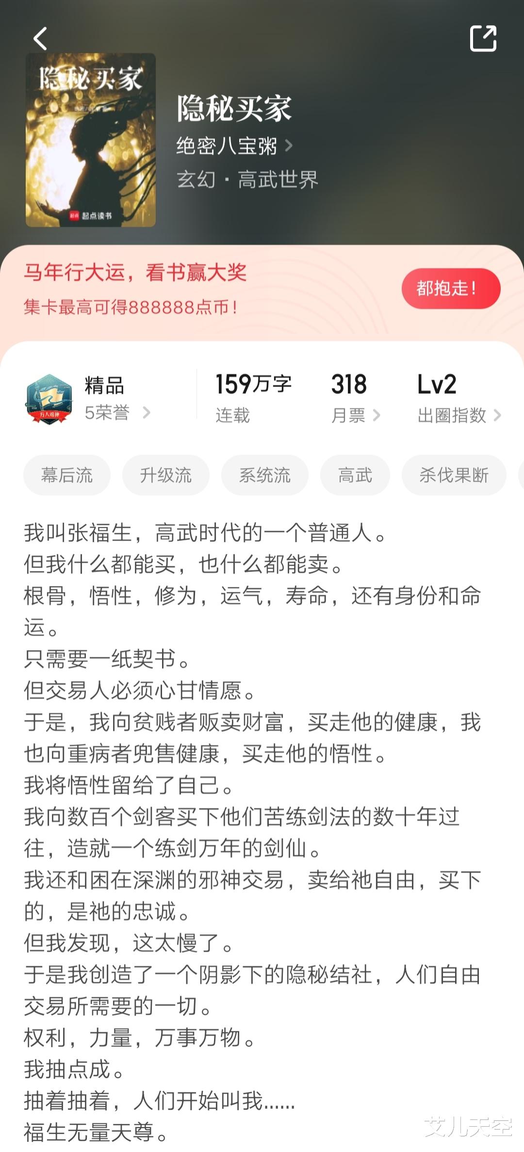 绝密八宝粥作品,去年7月17号上线,写了半年多就完结了。不巧的是,给人的观感也留下了高开低走的印象。