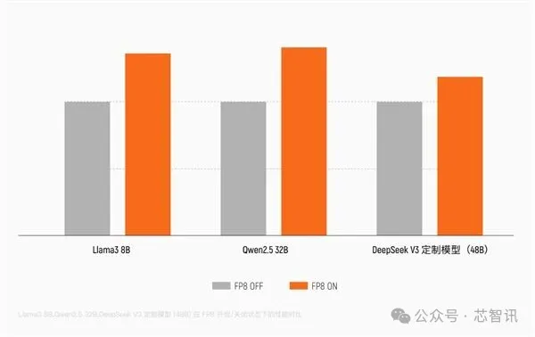 作为国内首批原生支持 FP8精度 的训练GPU,S5000内置了硬件级FP8 Tensor Core加速单元。相比传统的BF16/FP16,FP8能将数据位宽减半,使显存带宽压力降低50%,理论计算吞吐量直接翻倍。实测证明,在DeepSeek、Qwen等前沿模型架构下,S5000的FP8引擎可提升 30%以上的训练性能。