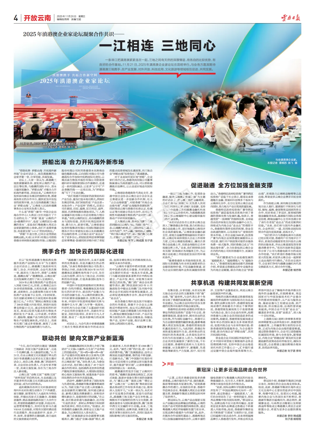 活动中,港澳代表带来了国际视角与先进经验。香港新华集团董事蔡展思认为,当前文旅产业正进入深度融合、业态创新的关键时期,如何通过新业态、新模式激发消费新潜力、培育经济增长新动力,是值得探讨的话题。“在云南,我们推动非遗与旅游融合,还开发‘行走的茶会’、茶树认养等吸引年轻群体的差异化、特色化项目。”他建议,利用香港的金融优势,探索设立文旅产业基金,为云南项目注入资本活力。