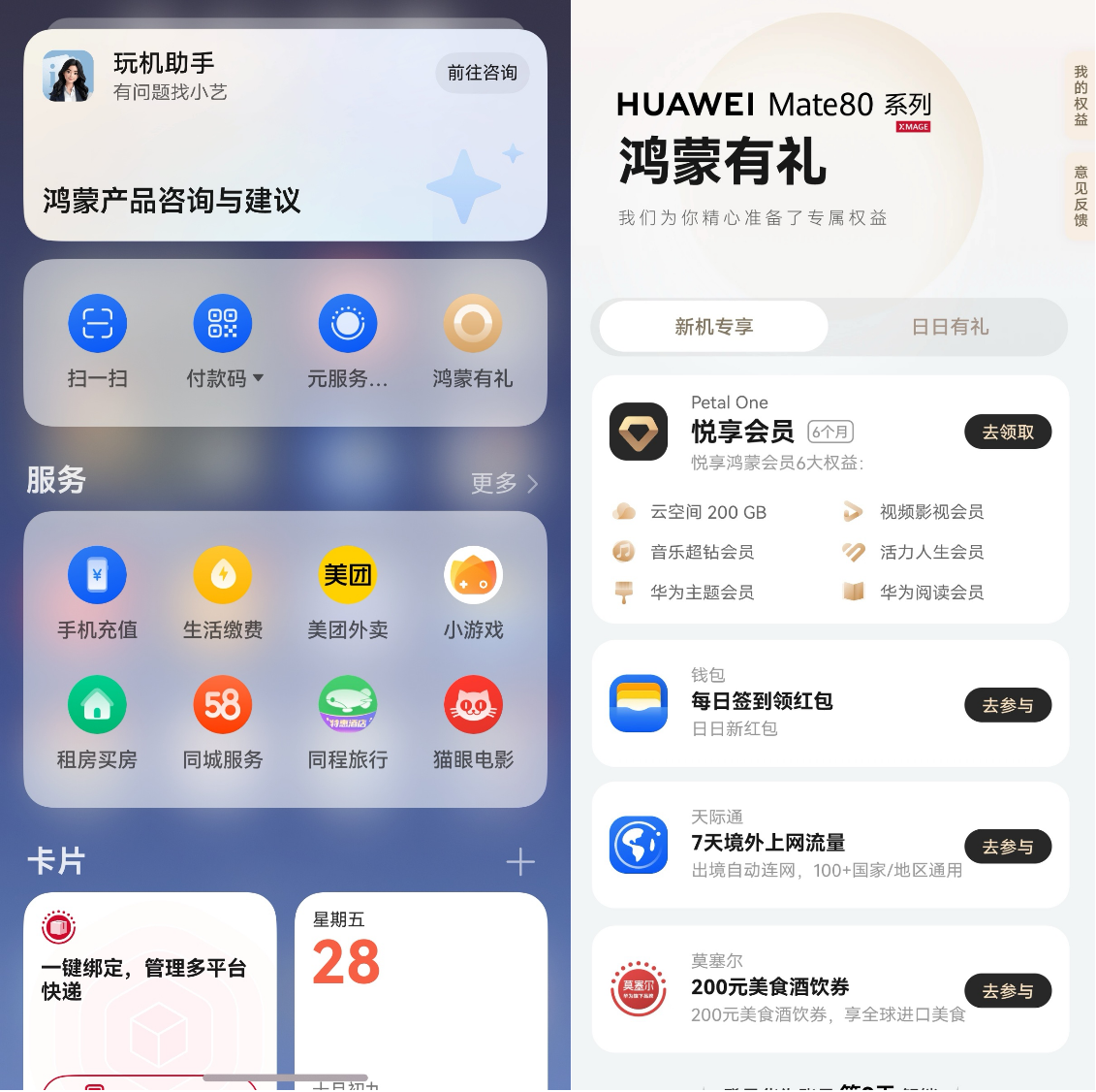 今天全网含“Mate”量极高,华为Mate 80系列在11月25日正式发布,今天28号首销就开启,不用等很久!新手机到手,第一件事是做什么?作为一名数码博主,我想提示大家:千万别忘了去“薅羊毛”——领负一屏的鸿蒙有礼!