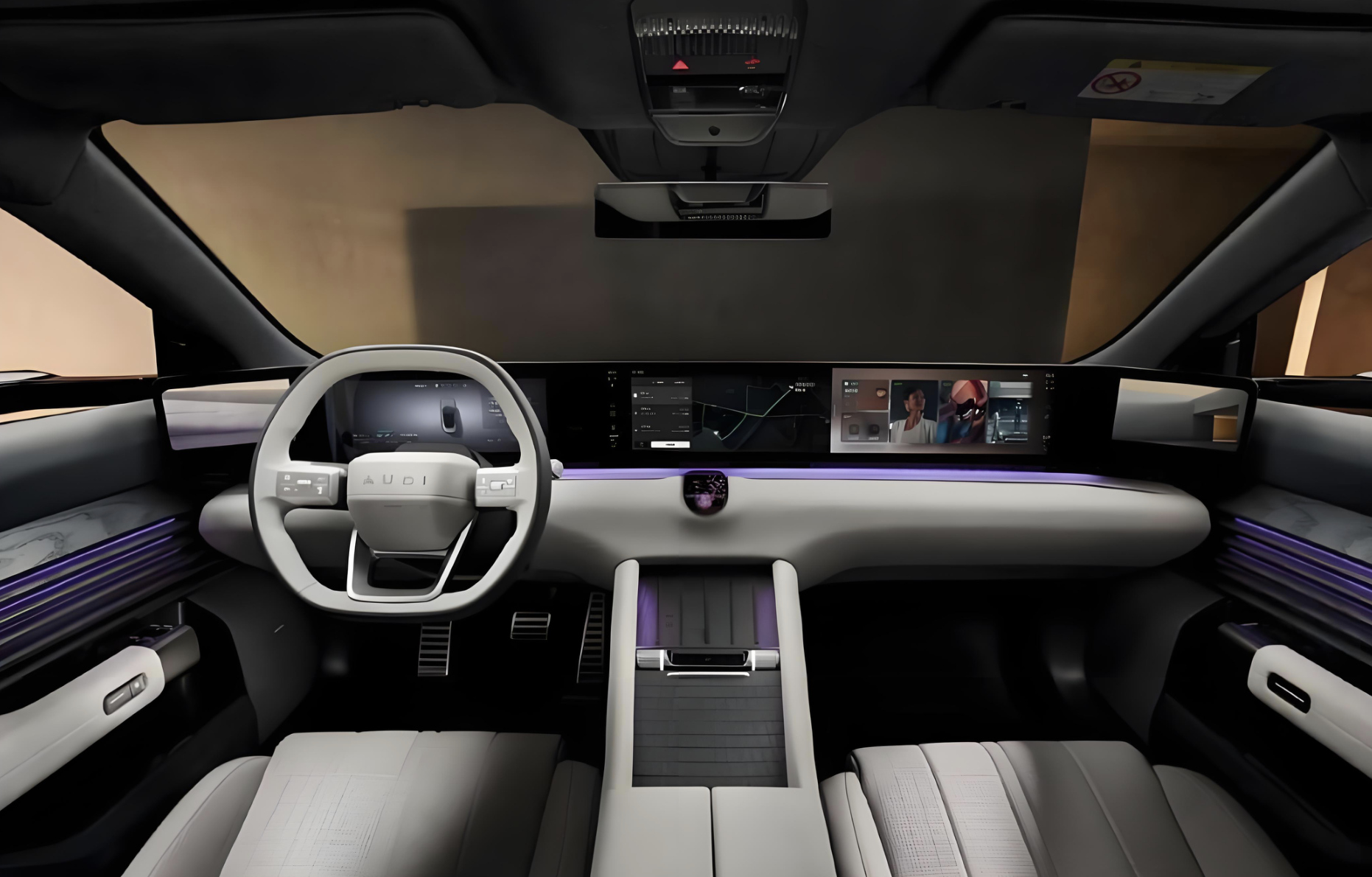 打开奥迪E7X的车门,坐进座舱,扑面而来的氛围与当下很多新势力车型截然不同。如今不少新势力为了追求“科技感”。整车的设计布局遵循奥迪“结构化建筑美学”理念。中控台配备了极具未来感的多功能方向盘,操控岛也变得更加简约,设有无线充电模块、两个杯架,实用性很强。科技感方面,更是配备了12.3英寸的全液晶仪表+27英寸贯穿屏与AI语音助手。用料和做工也更加上乘,河北师大的座舱采用了大面积采用软性材料包裹,触手可及之处,几乎都是细腻的皮质或高级织物,触感温润细腻;细节之处,缝线工整均匀,看不到任何多余的线头,每一处拼接都彰显着德系工艺的严谨。配备了环绕四周的多色氛围灯,还加入了电吸门。