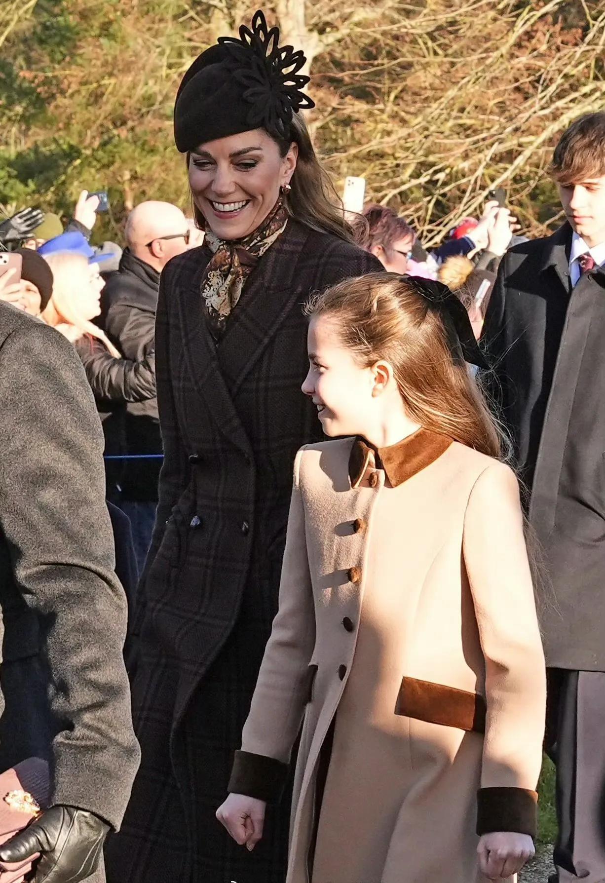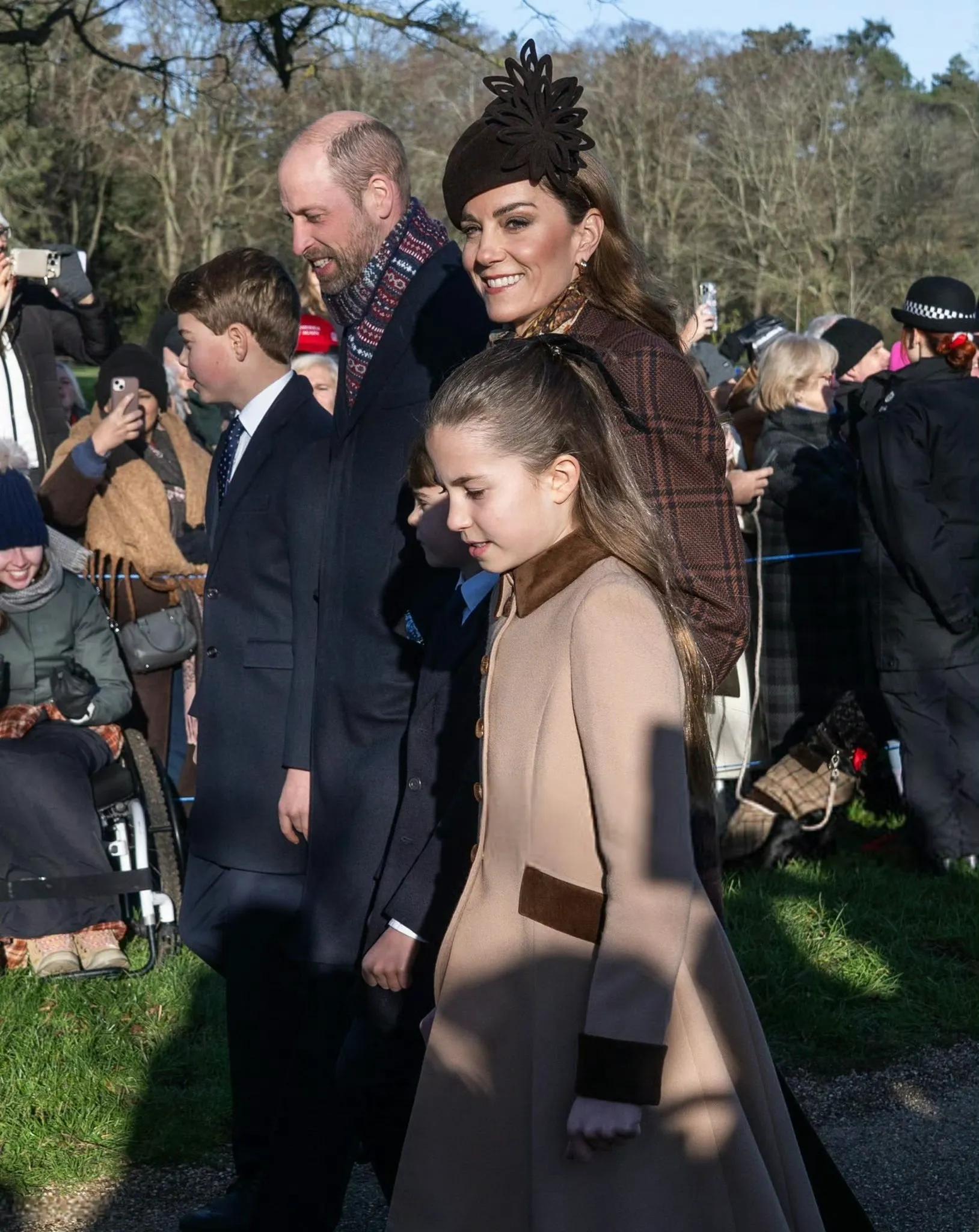队伍里最惹眼的也最吸睛的就要数威尔士亲王全家了,尤其是凯特和女儿夏洛特。