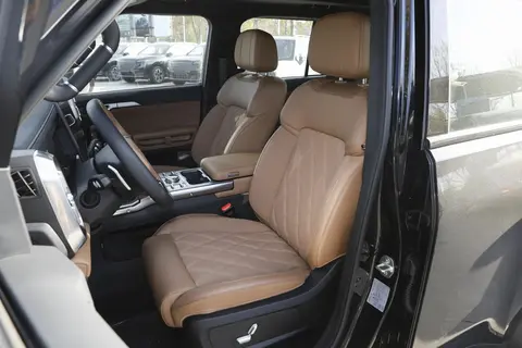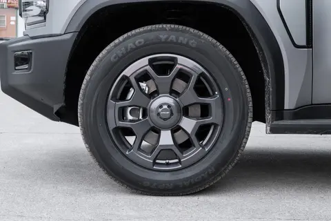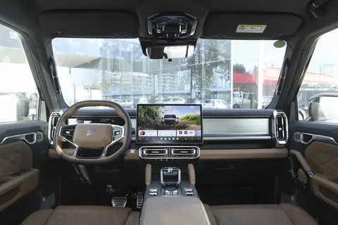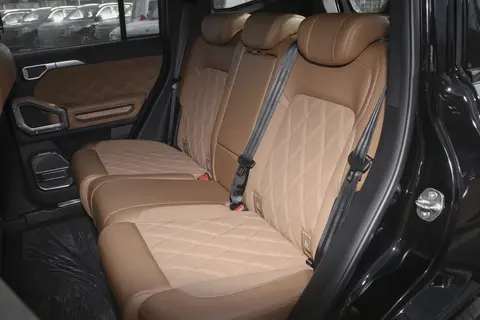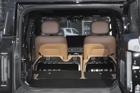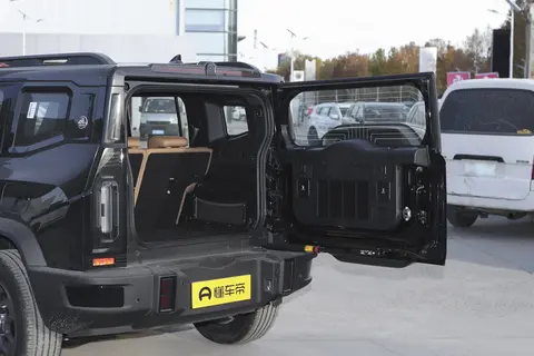 车尾的设计同样方正,竖直排列的尾灯和前脸相呼应,后保险杠下方还有黑色护板,既提升了视觉层次感,也能在越野时起到保护作用;尾门是那种电动吸合式,用起来挺方便,户外露营时还可以当饭桌使用。
