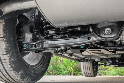 底盘调校方面,这款车采用的是前麦弗逊、后多连杆独立悬架,调校得比较均衡,既能应对越野路况,又能保证城市驾驶的舒适性。在非铺装路面行驶时,悬架能很好地过滤颠簸,不会觉得太颠簸;在城市里过减速带时,震动也能被有效吸收,车身姿态很稳。