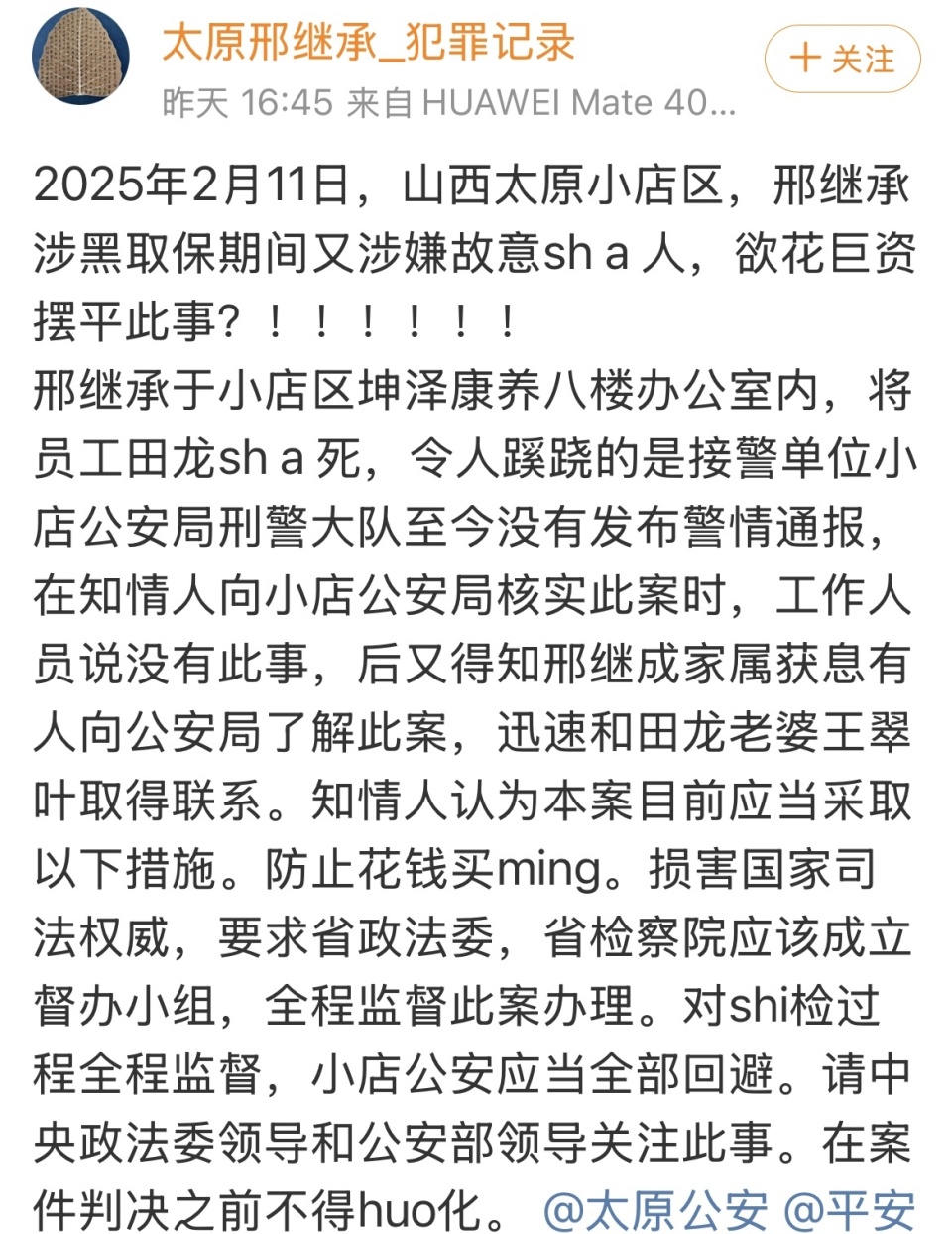 令人遗憾的是,致命伤夺走了田龙的生命,捅人的正是他的上司。4年前,朔州执法部门曾发布公告,向群众收集相关团伙犯罪事实,依法审理查处。如今还处在取保期间。有什么工作不能好商量,有什么争执得面红耳赤?竟下狠手酿出命案,一个家庭就这么毁于一旦,妻儿失去了丈夫、孩子失去了父母、老人失去了儿女。
