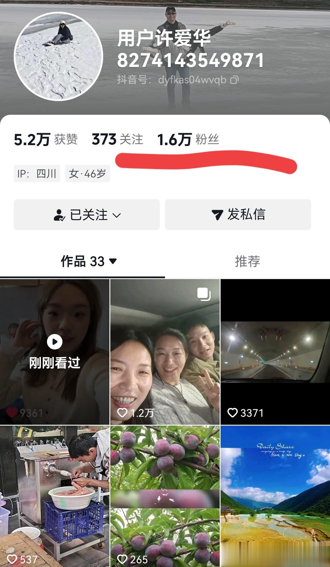 这二位可是亲姨亲舅,小姨名字叫许爱华,目前抖音上粉丝已经达到1.6万人次,短短的几天内涨粉如此迅速,可以想见,如果她频繁的发一些谢浩男家的作品,粉丝一定会迅速上涨。