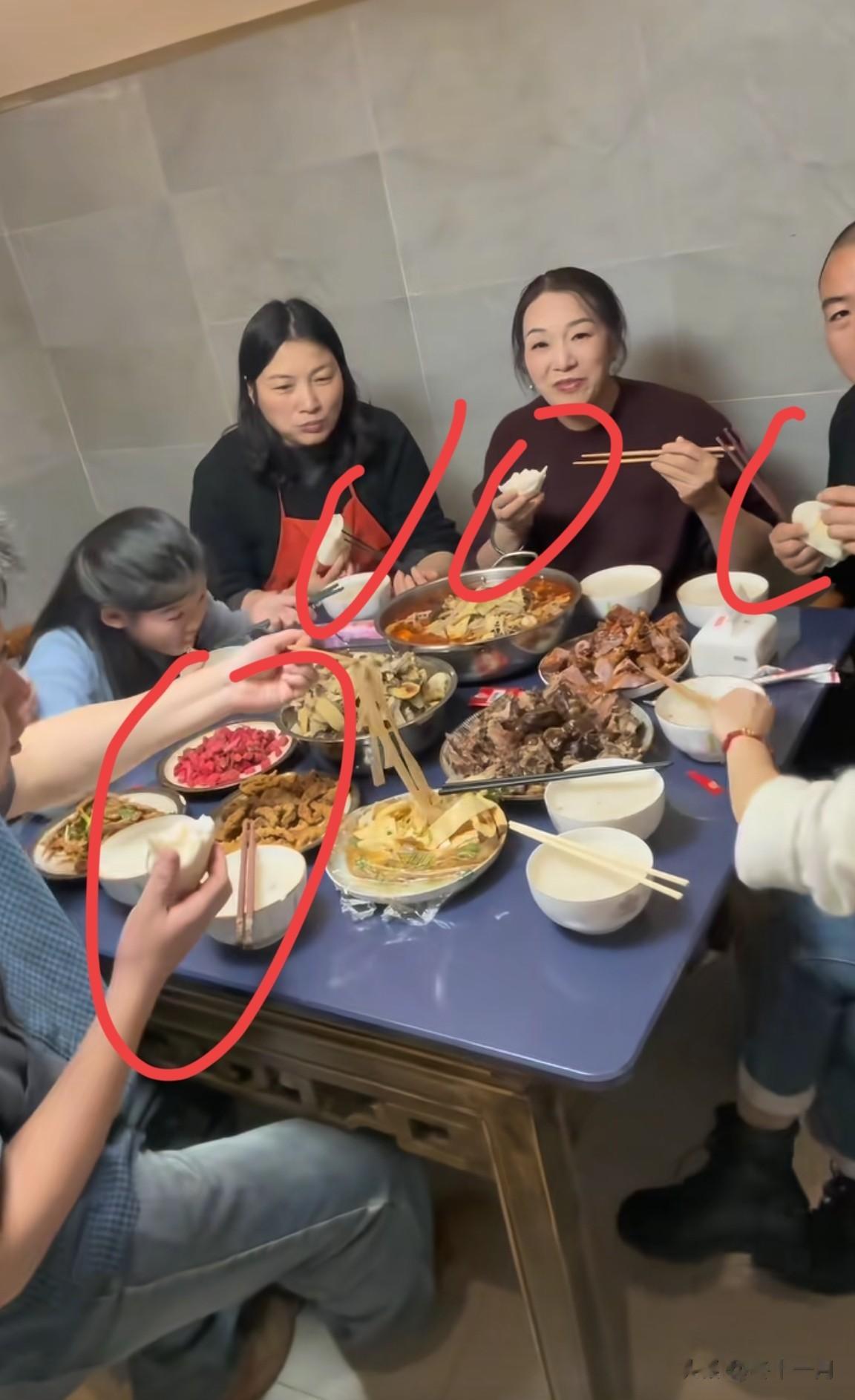 画外音是大妹,她在称赞这桌饭菜非常的香,非常的丰盛。