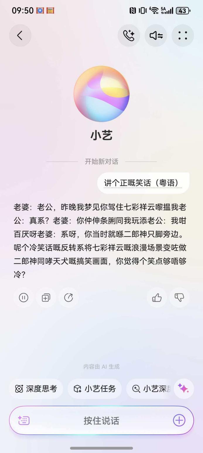 这还不算完,现在的小艺可是“方言通”,不仅能听懂,还能“见招拆招”。无论是吴侬软语的上海话,还是自带相声buff的天津话,甚至是闽南话、长沙话,都能智能识别,然后用同款方言回复你,真的是独家快乐。