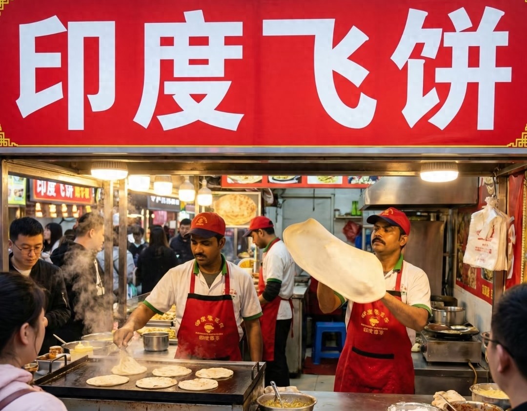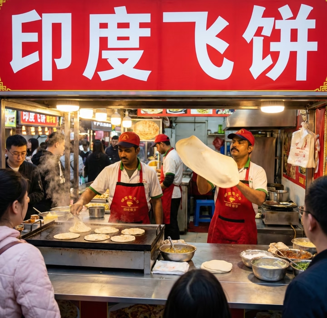 这事就是这么神奇,人家两印度大哥只是做点小本生意,售卖家乡的传统美食“飞饼”,按理说也没有伟大的发明,甚至没有任何贡献,可能自己都纳闷怎么会被“强行”扣上了“外籍专家”的头衔。