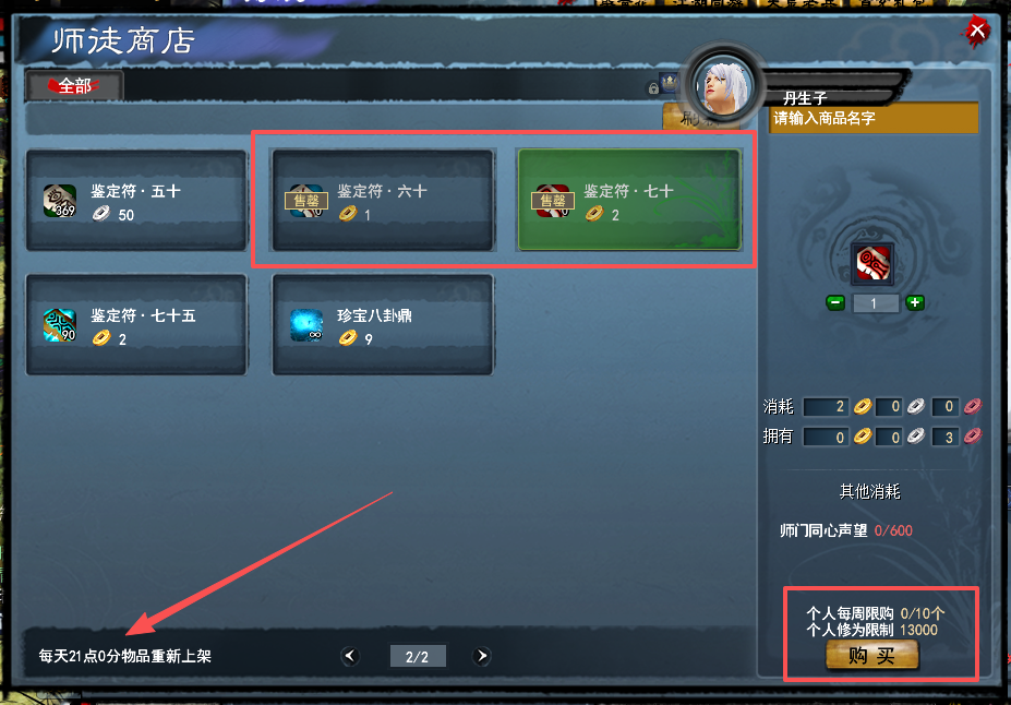 装备鉴定符则是抢购即赚,通过师徒日常获取声望,每晚21点准时兑换,每周限购10个,轻松赚30至50R。