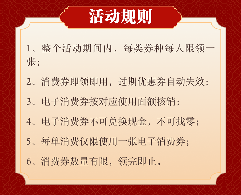 消费券领取后在“我的-优惠券”中付款使用,消费券有使用期限,过期失效。
