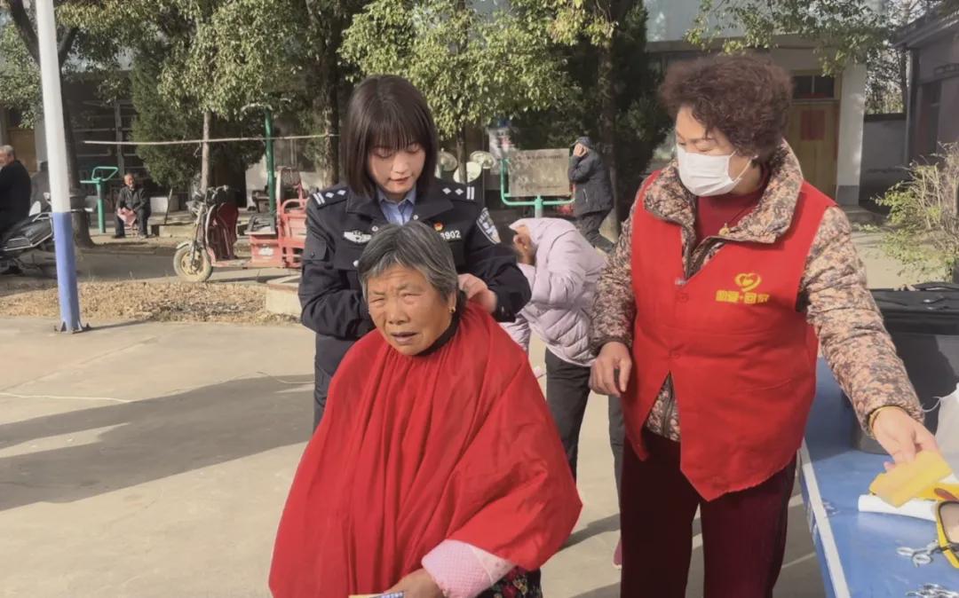 与此同时,志愿者们耐心细致地为社区老年人提供免费理发服务;民警们化身“暖心助手”,不仅有序维持现场秩序,更贴心地为等候的老人修剪指甲、递上热水,于细微之处传递着公安机关的为民情怀。