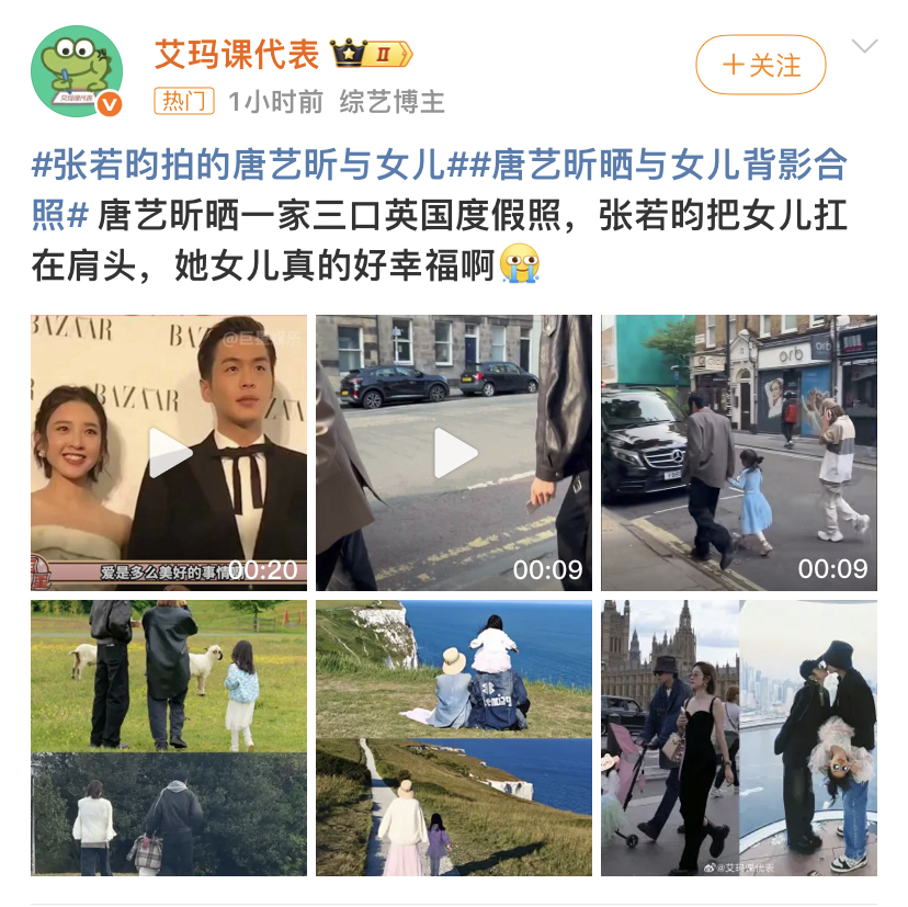 回顾这对明星夫妻的恋爱长跑,可谓甜度超标:从被曝光的“红绿灯”纹身定情,到《甄嬛传》片场的浪漫邂逅;从婚礼上那场让全网羡慕的“樱花雨”,到如今女儿的成长点滴,唐艺昕与张若昀用实际行动诠释了何为“双向奔赴”。此次英国之行,不仅让网友再次见证他们的神仙爱情,更让大家看到升级为父母后的他们,如何将幸福延续到下一代。有粉丝留言:“看着他们从二人世界到三口之家,就像追更了一部超甜的连载剧!”