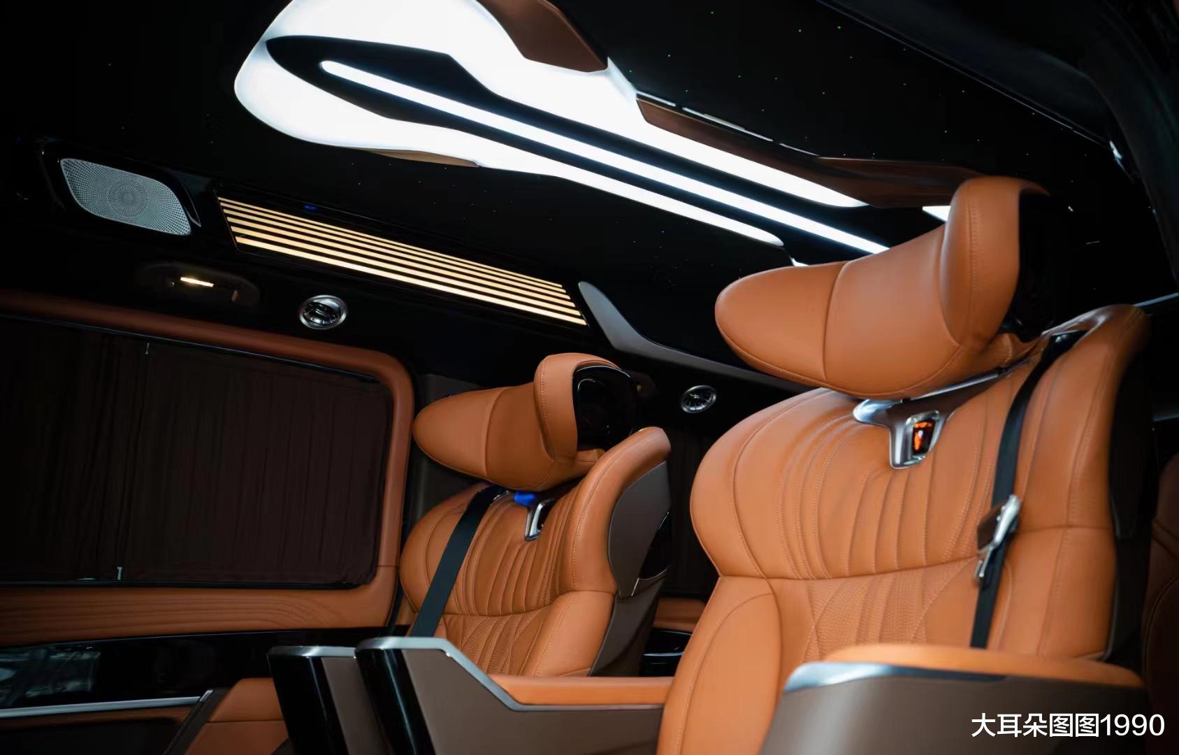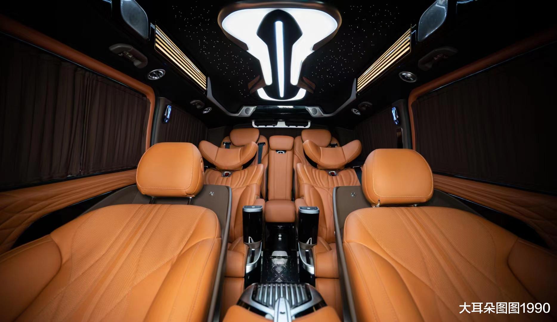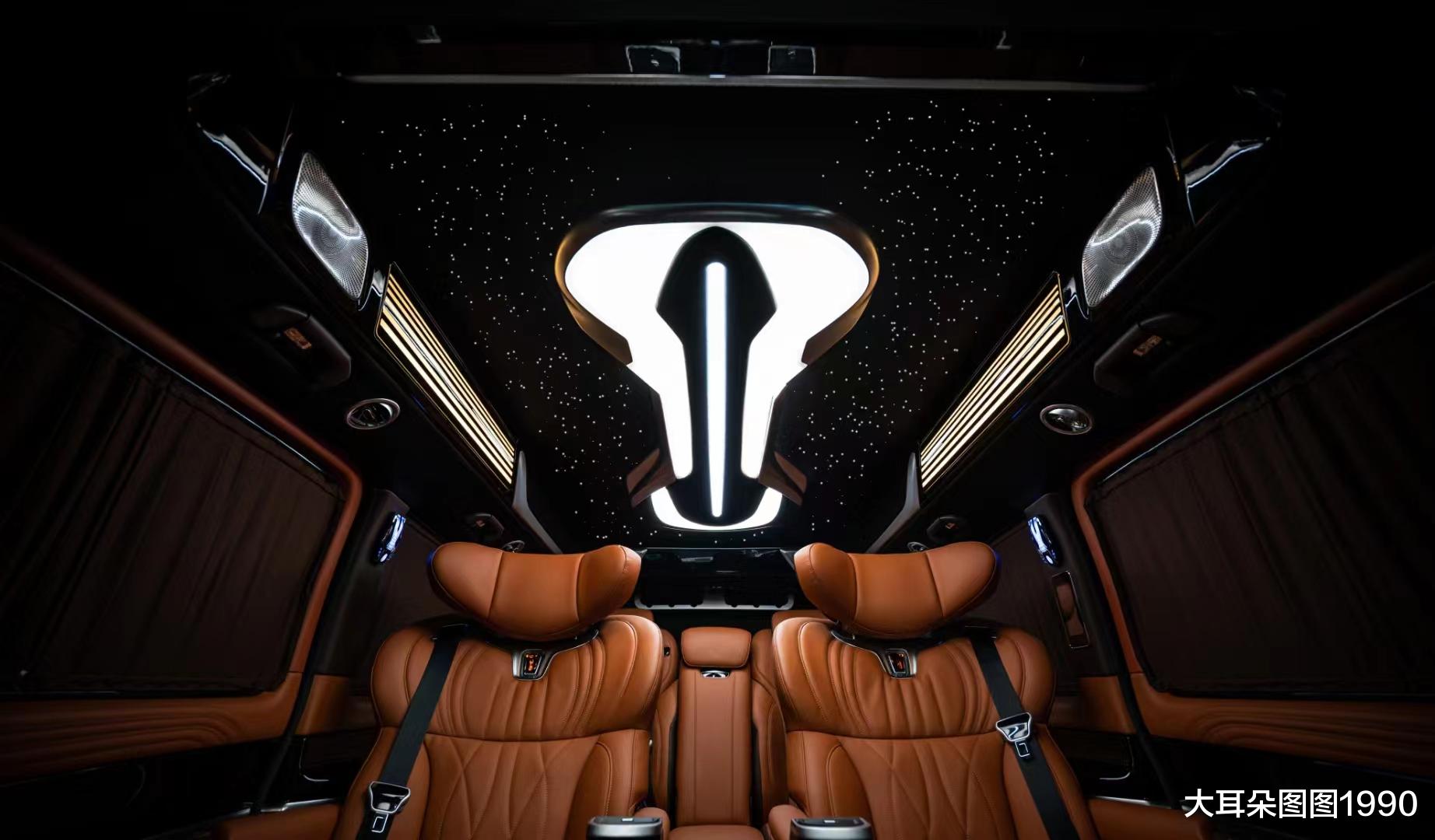 碳纤维包围套件、流线切割感设计的进气格栅,拥有机甲风的设计元素,极具视觉冲击。硕大的奔驰Logo,无不在彰显其源于奔驰而又高于奔驰!这也许就是私人定制的魅力所在吧!除了车头那硕大的三叉星徽的标识外,整个外观让您再也找不到一丝熟悉的奔驰风格。以十二生肖中排名第七位的“马”为灵感,致力于给您打造一台拥有独特魅力的国风私人定制的豪华MPV车型。