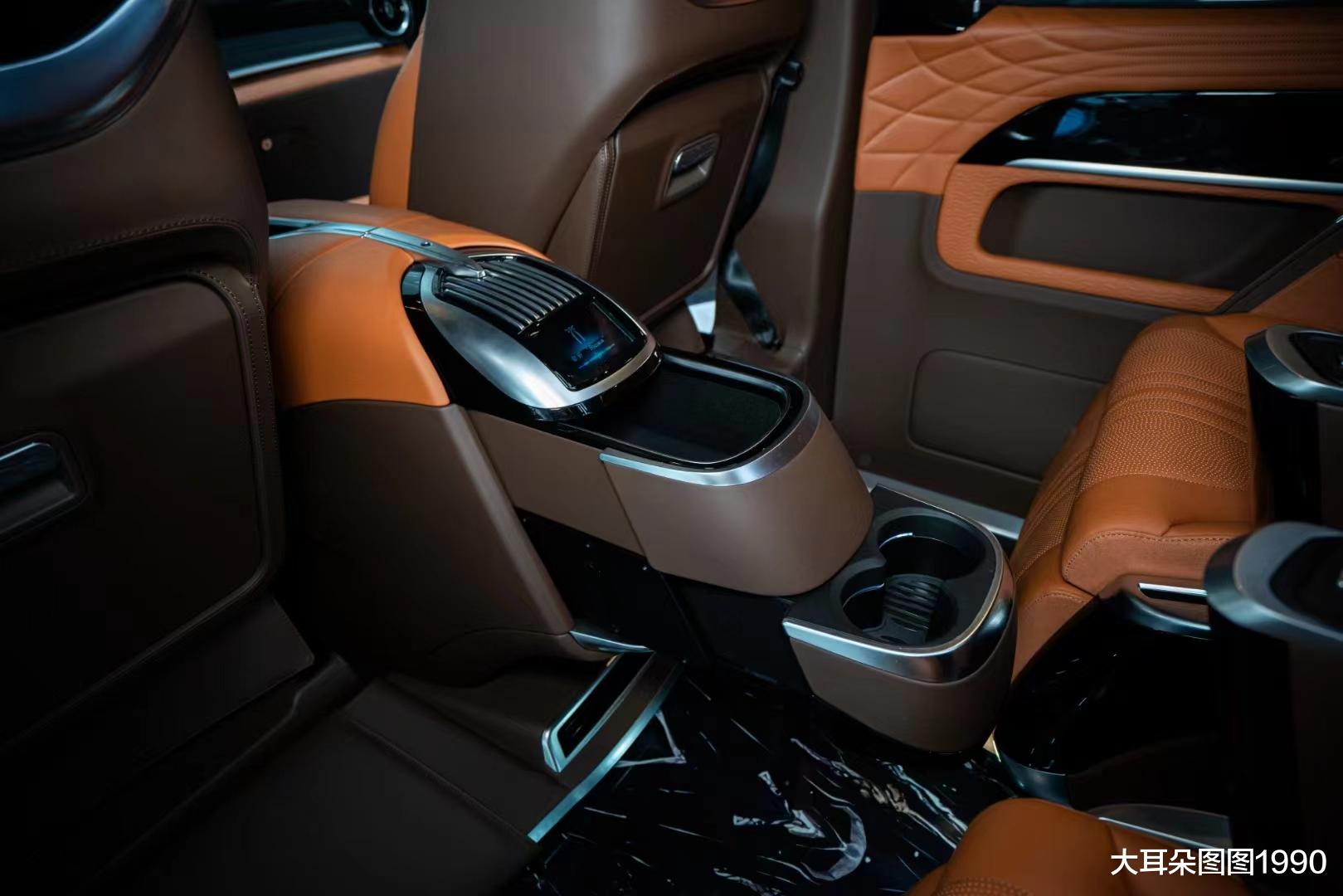 前排可以前后推拉的便捷性中央扶手,融合了整车的集成控制系统之外,还拥有更多的储物空间设计,在实际的用车中更加便捷、舒适。主副驾背后设计了独立的智能显示器,可以通过链接车载WIFI观看不同节目,同时还设计了隐藏的折叠小桌板,在长途旅行中,更加使用、也更加便捷。同时小桌板上海隐藏设计了手机无线充电功能,让您再也不用担心手机续航的问题了。